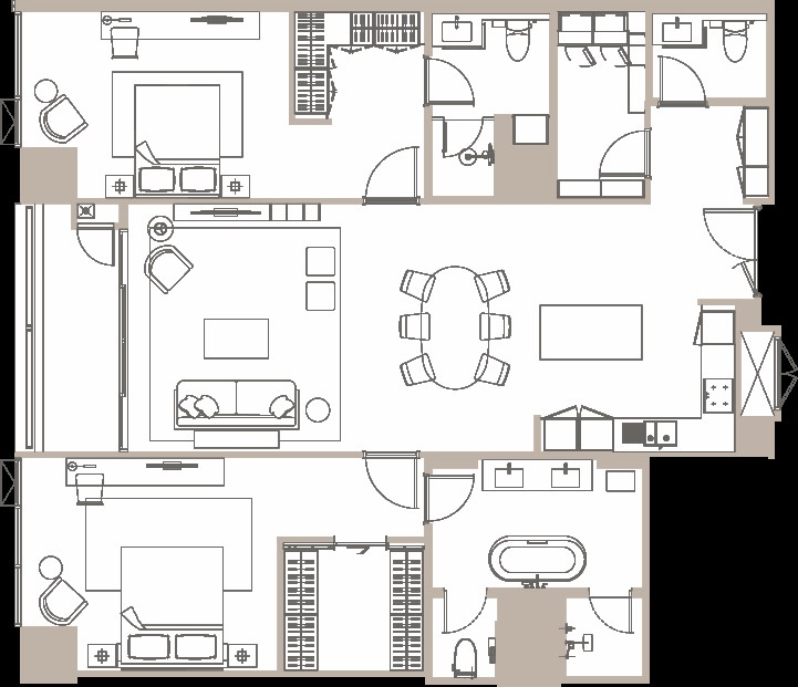 - Internal doors: Hard-wood door with high-quality laminated finish and HAFELE fittings