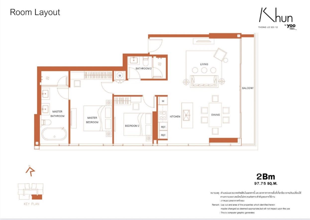 Imagine stepping into a beautifully decorated corner room on the 16th floor, where you'll be mesmerised by breathtaking panoramic views of Thong Lo. With 98 sq.m of thoughtfully designed space, this gorgeous 2-bedroom, 2-bathroom unit features a kitchen with a chic island from Kvic (Denmark) and top-of-the-line built-in appliances, including a refrigerator, dishwasher, and microwave. Imported furniture from Bo Concept (Denmark) adds to the upscale atmosphere, making this one of the most coveted floor plans in the entire project!