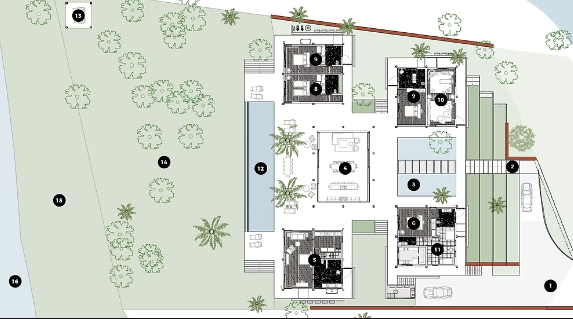This exclusive villa features five distinct bedroom pavilions, ensuring complete privacy for all guests. A dedicated staff—including a villa manager, chef, and housekeeping—awaits to cater to your every whim, from personalized meal preparation to organizing excursions and recreational activities.