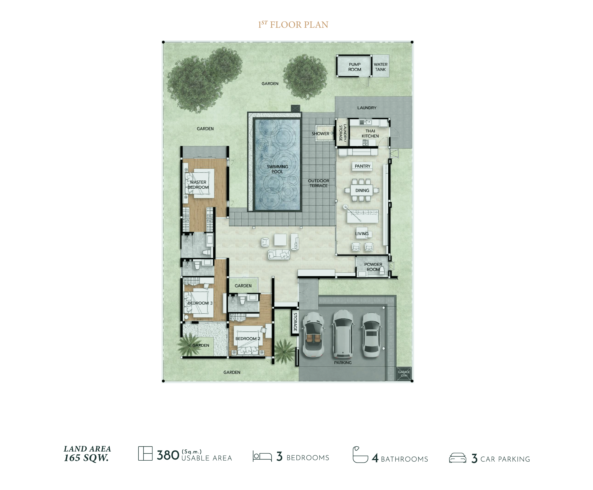 Usable Living Area: 380 Square Meters / Land Area: 165 Square Wah (660 Square Meters)
