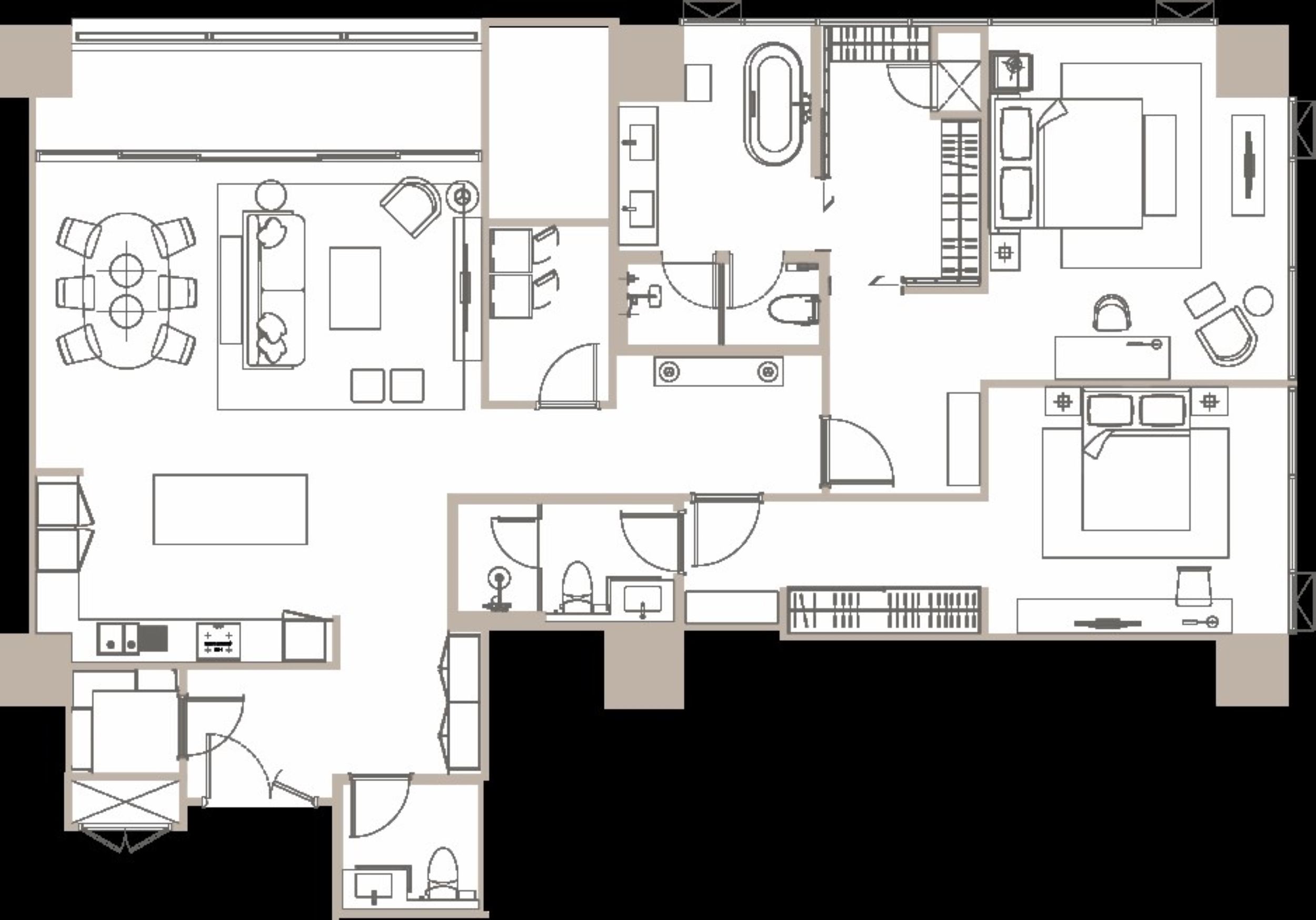 - Internal doors: Hard-wood door with high-quality laminated finish and HAFELE fittings